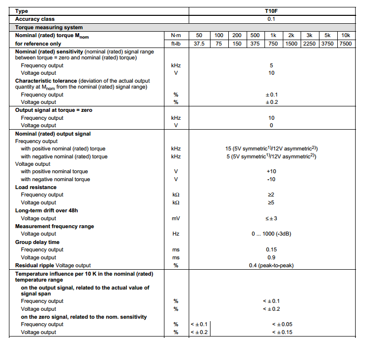 T10F 扭矩傳感器: 額定扭矩從 50 N·m 到 10 kN·m