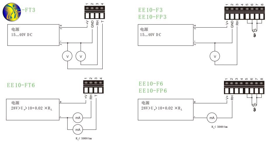 奧地利E+E EE10系列溫濕度傳感器電路連接圖