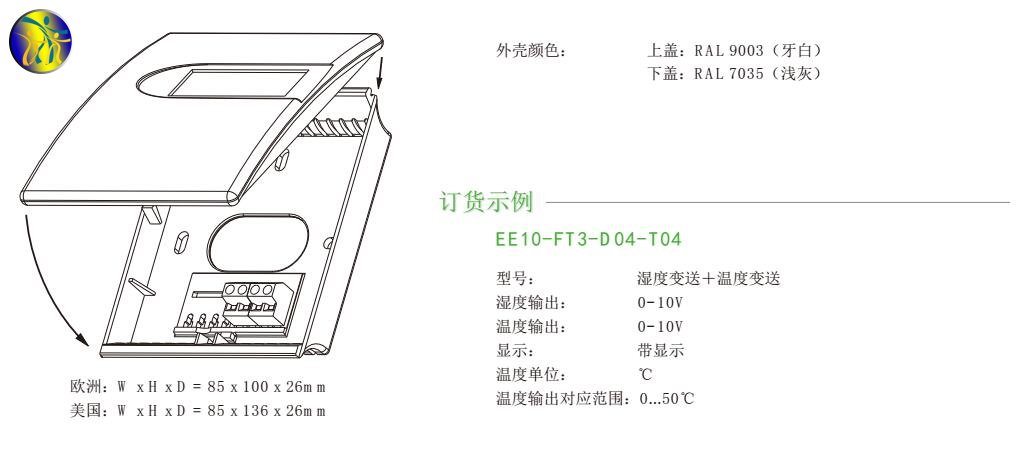 EE10-FT3-D04-T31,濕度變送+溫度變送,0-10V輸出,帶顯示,-5~55℃溫度輸出范圍