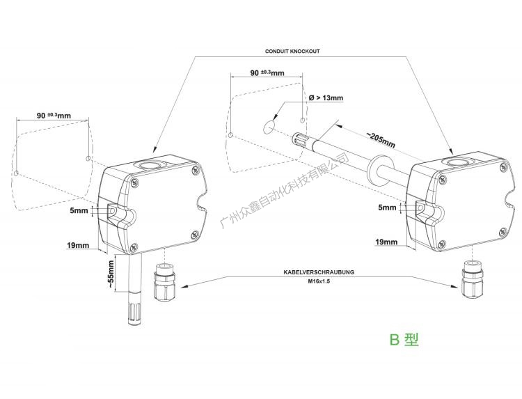 三、奧地利E+E品牌 EE160溫濕度變送器安裝尺寸