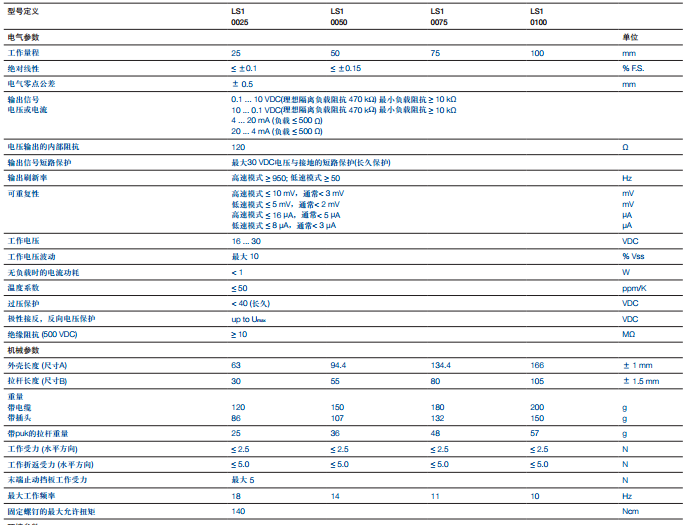 德國NOVOTECHNIK位移傳感器LS1系列產品參數: