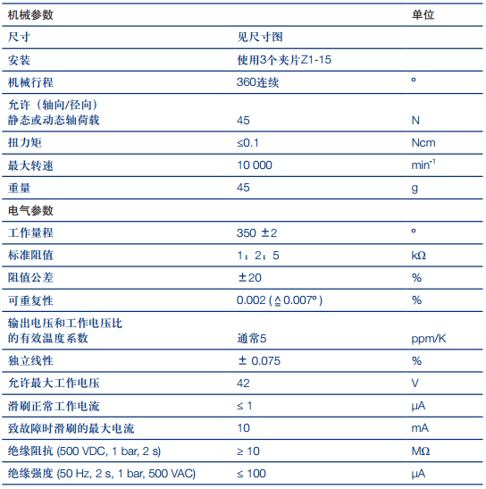 德國NOVOTECHNIK角度傳感器P4500系列產(chǎn)品參數(shù):