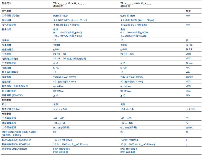 德國(guó)NOVOTECHNIK位移傳感器TP1系列產(chǎn)品參數(shù):