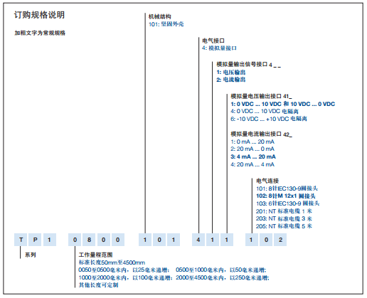 德國(guó)NOVOTECHNIK位移傳感器TP1系列所有量程如下: