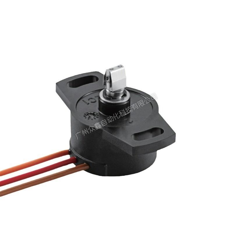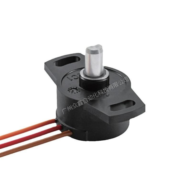 該傳感器采用電位計(jì)原理,將角度位移轉(zhuǎn)換成電壓信號(hào)輸出。