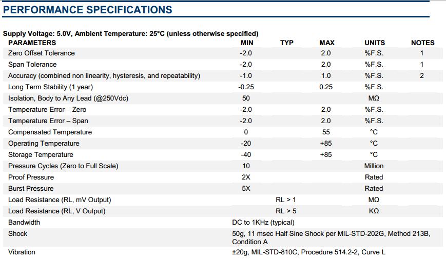 MSP340系列美國MEAS壓力傳感器指標(biāo)