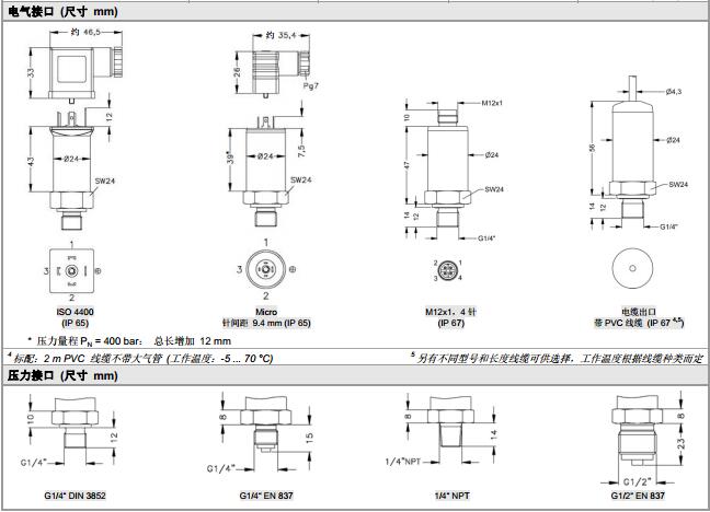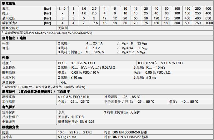 ? 額定量程:從 0 … 1 bar 至 0 … 400 bar
